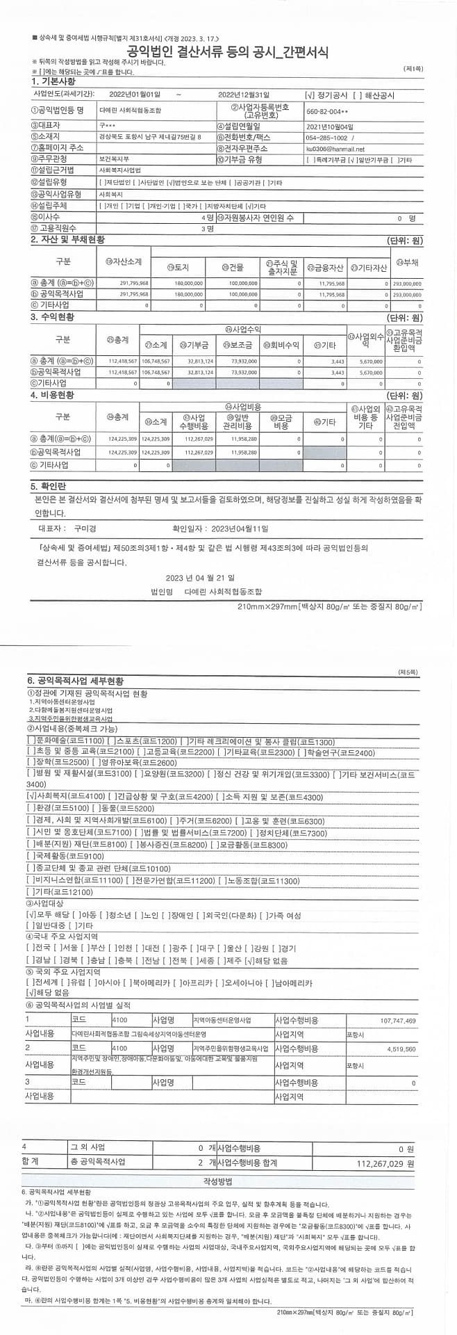 2022 연간기부금 모금액 및 활용실적명세서